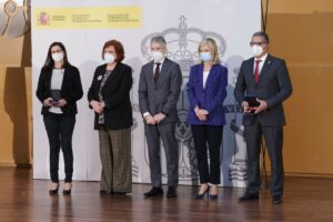 Antes del acto de entrega de condecoraciones, el ministro del Interior ha visitado, junto a la consellera de Justicia, Interior y Administración Pública de la Generalitat Valenciana, Gabriela Bravo, la Oficina de Denuncias y Asistencia a las Víctimas de Violencia de Género abierta en la Ciutat de la Justícia de Valencia.