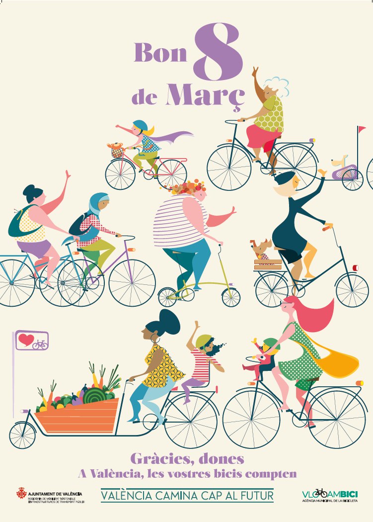 En el marco de la celebración del 8 de Marzo, Día Internacional de la Mujer, la Concejalía de Movilidad Sostenible ha elaborado un cartel conmemorativo «que quiere contribuir y poner en valor el uso creciente de los carriles bici de la ciudad por parte de las mujeres». El concejal de Movilidad Sostenible, Giuseppe Grezzi, y la concejala de Igualdad, Lucía Beamud, han presentado el cartel este martes, acompañados de la autora de la obra, la artista Virginia Lorente.