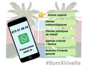 El Ayuntamiento de Xirivella ha activado hoy su servicio de Whatsapp municipal con la numeración 673 51 58 54. El Consistorio, que ya está presente en redes sociales como Facebook, Twitter o Instagram, apuesta por esta modalidad de mensajería dada su inmediatez y su gran impacto entre los usuarios de telefonía móvil. La temática a […]