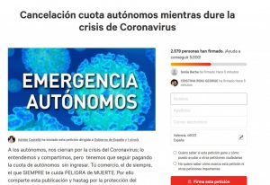 Un autónomo de Torrent ha iniciado en una plataforma de recogida de firmas una petición para pedir que se anulen las cuotas de autónomos hasta superar la crisis del coronavirus. La petición, que se puede ver en este enlace, ha recogido en menos de 24 horas más de 2.600 adhesiones superando el primer objetivo de […]