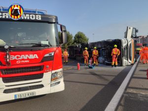 El vuelco de un camión en la CV-35 entre los términos municipales de Burjassot y Paterna ha provocado alrededor de un kilómetro de retención en la citada vía y casi dos kilómetros en la CV-31. El siniestro se ha registrado sobre las 16.35 horas de este viernes en el kilómetro 5 de la CV-35 en […]