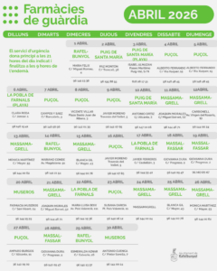 Coneix les farmàcies de guàrdia disponibles a Torrent per al mes d'abril. Es composaran d'una llista actualitzada amb informació rellevant per a la comunitat. A més, es poden seguir les novetats mitjançant els canals de WhatsApp i Telegram de NostresNotícies.