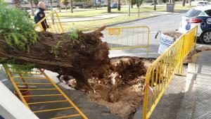 El fuerte viento está provocando hoy numerosos incidentes aunque no ha habido que lamentar daños personales. Tampoco en la espectacular estampa que se producía en Rocafort a las 14 horas cuando un enorme árbol ha caído sobre la terraza del Bar Salada, en la calle del doctor Nicolás Alonso. Por fortuna, únicamente ha habido que […]