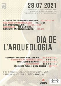 El Ayuntamiento de València celebrará el Día de la Arqueología, que se celebra el próximo 28 de julio, con visitas abiertas y gratuitas a toda la población en cinco espacios arqueológicos de la ciudad: la muralla islámica, el refugio antiaéreo, el centro arqueológico de l’Almoina, el refugio de Serranos y la intervención arqueológica de la […]