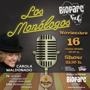 Este viernes 16 de noviembre Bioparc Café trae el humor de Carola Maldonado a sus monólogos. Esta letrada que decidió cambiar la toga por la risa, canciones y cachondeo, nos sorprende con un espectáculo de producción propia, en el que se integra el humor de stand up comedy con la improvisación teatral y un toque […]