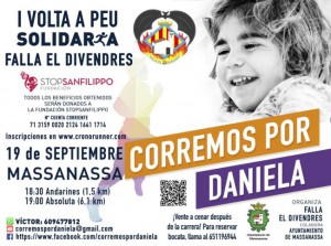 El próximo sábado 19 de septiembre las calles de Massanassa se llenarán de corredores solidarias que participarán en la ‘I Volta a peu solidaria: Corremos por Daniela’ organizada por la asociación cultural Falla El Divendres y la fundación StopSanfilippo. El objetivo de la carrera es recaudar fondos para financiar la investigación de una posible cura […]