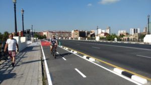 El servicio de Movilidad Sostenible ha abierto este jueves el nuevo carril bici que conecta de manera directa el barrio de Natzaret con la fachada marítima a través del Puente de Astilleros. Este puente es el que menos tráfico motorizado registra de la ciudad pese a su gran número de carriles destinados a ello (seis […]