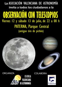 La Asociación Valenciana de Astronomía, en colaboración con el Ayuntamiento de Paterna, ha organizado una jornada de observación con telescopio este fin de semana en el Parc Central de la localidad. Tal y como ha explicado la concejala de Turismo, Cultura y Fuego, Teresa Espinosa, “se trata de una actividad que tiene como objetivo acercar […]