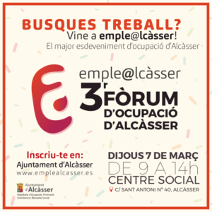 Alcàsser està preparada per a acollir una nova edició del fòrum EMPLE@LCASSER, una jornada centrada en l'ocupació que, a banda d'oferir assessorament, formació i informació, s'encarrega de posar en contacte de forma ràpida i directa a empreses que busquen candidats amb persones que busquen treball. La jornada es celebrarà el pròxim dijous 7 de març, […]