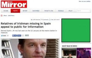 Sin novedades. Esta es la respuesta de fuentes de la Policía Nacional dada a Hortanoticias cuando ha sido preguntado en reiteradas ocasiones por Dermot Quinn, un empresario de Godella que fue visto por última vez el jueves 23 de enero en la parada de metro de este municipio de l'Horta, tal y como publicó en su momento […]