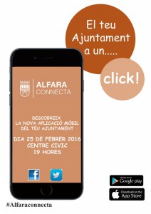 Desde que se presentó el pasado 25 de febrero de 2016 la aplicación móvil del Ayuntamiento de Alfara del Patriarca, Alfara Connecta, se han registrado 353 descargas: 279 en móviles Android y 74 en su versión para iPhone. El alcalde de Alfara del Patriarca, Llorenç Rodado, ha destacado la “buena acogida de esta app que […]