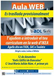 El Ayuntamiento de Alfafar ha habilitado un aula con doce ordenadores en el antiguo edificio de Bancaja para prestar orientación en la cumplimentación de la documentación requerida por la multinacional Ikea en su proceso de selección, en la fase vía web. Las aulas, que permanecerán abiertas hasta que finalice el proceso de selección, estarán atendidas […]