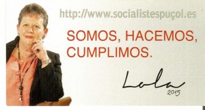 Los socialistas de Puçol asistieron la noche del viernes 12 de diciembre, en un salón de la localidad, a la presentación pública de Mª Dolores Sánchez Parra como candidata a la Alcaldía de Puçol para las próximas elecciones municipales. En su intervención, Mª Dolores Sánchez Parra, actual vicesecretaria general de la agrupación y portavoz del […]