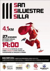 El pròxim 27 de desembre se celebrarà a Silla la III Sant Silvestre Solidària. Un recorregut urbà no competitiu de 4, 1 quilòmetres, que començarà a les 19 hores a la plaça del Poble i finalitzarà al mateix lloc. Col·labora l'Ajuntament de Silla, el Club d'Atletisme de Silla i Triamics, el Club Triatló de Silla, […]
