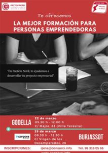 El Consorcio Pactem Nord ha programado para este mes de marzo dos sesiones de formación dirigidas a personas emprendedoras residentes o que vayan a desarrollar su proyecto de negocio en l’Horta Nord. La primera sesión se celebrará en Godella el viernes 22 de marzo y la segunda en Burjassot el viernes 29 de marzo. En la primera sesión se les enseñará […]