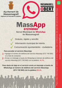 No hace ni apenas una semana que el Ayuntamiento de Massamagrell ha querido incluir una nueva forma de notificación con los vecinos de la población y ya son muchos los que ante la posibilidad que ofrece la nueva forma de comunicación con el Consistorio se han querido adherir al proyecto. En concreto, el nuevo servicio […]