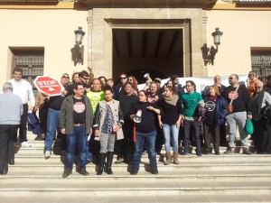 Después de pasar su primera noche en el salón de plenos del Ayuntamiento de Paterna junto a activistas de la Plataforma de Afectados por las Hipotecas, Soledad Ceballos ha recibido esta mañana a medio centenar de personas que, a las 12, se han concentrado en la puerta del Consistorio para mostrar su apoyo a esta […]