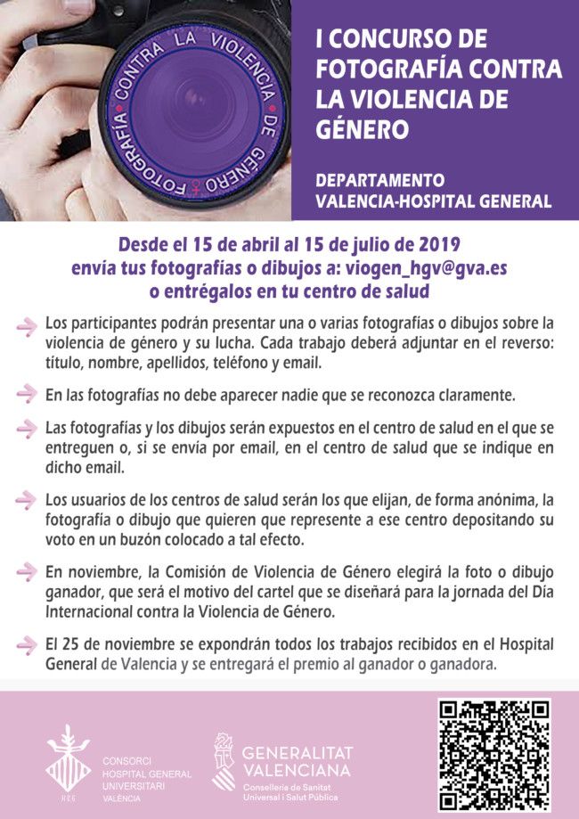 El departamento València - Hospital General ha organizado un concurso de fotografía y dibujo contra la violencia de género con el objetivo de dar la mayor visibilidad a la lucha contra la violencia de género, invitar a la población a que reflexione y dar a conocer el apoyo que, desde los centros de salud, se puede ofrecer a las mujeres que lo sufren.