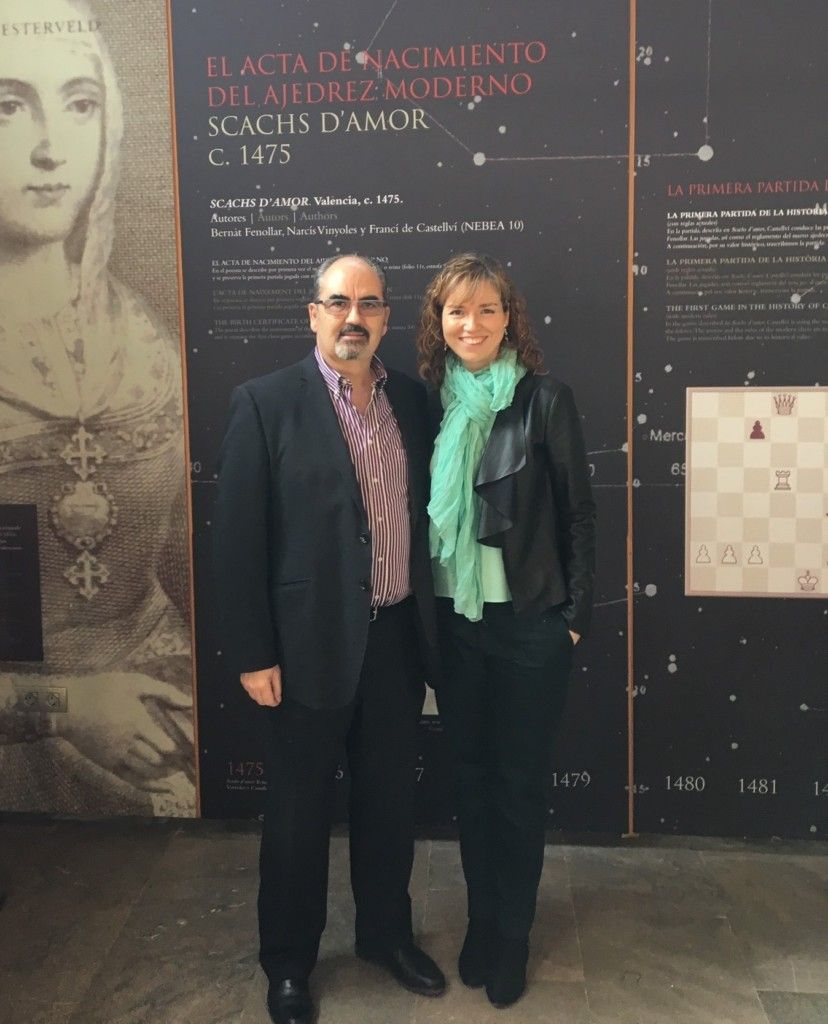 También acudió a la Sala de Valencia Cuna ubicada en el Complejo Deportivo Petxina donde el propio presidente de la FACV le explicó lo que significa esta instalación, no solo para el ajedrez valenciano sino para el ajedrez mundial. Sabrina Vega plasmó su firma en el panel reservado para ilustres visitantes junto a la firma de la Campeona del Mundo Hou Yifan.