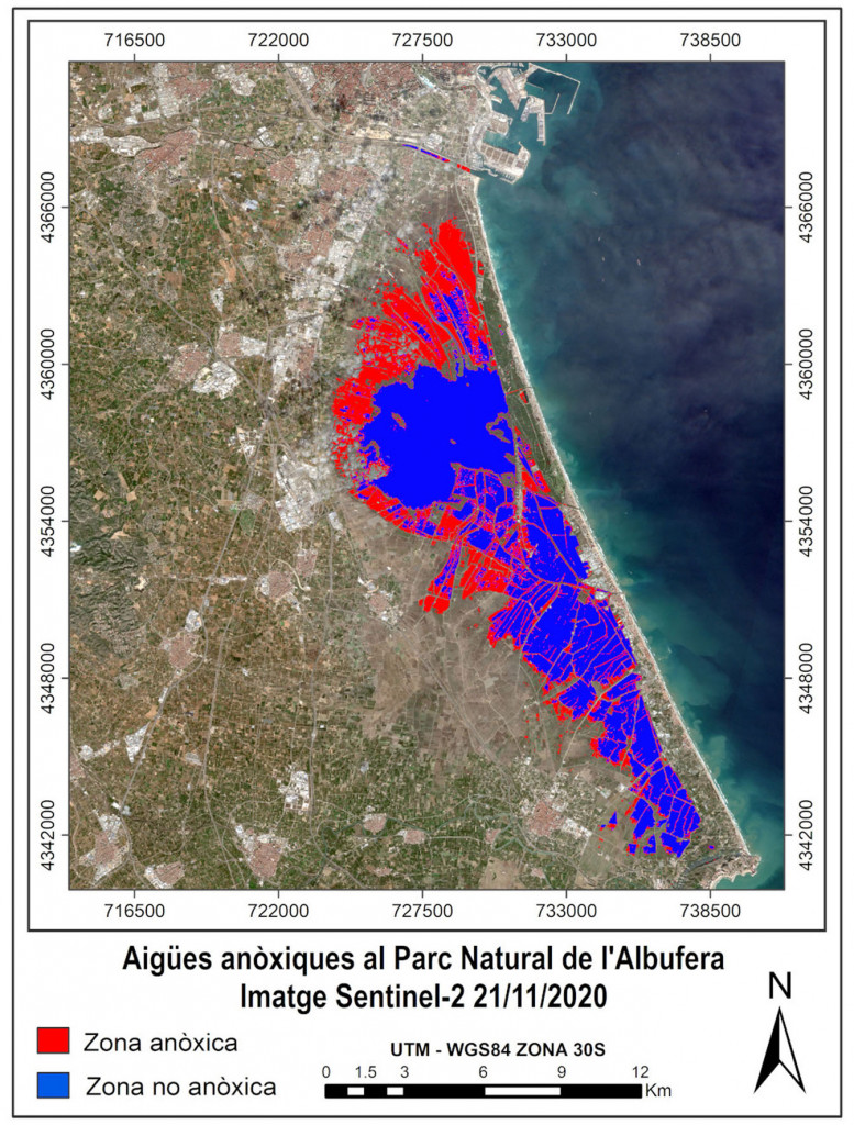 Las imágenes obtenidas permiten observar la extensión de los arrozales en los cuales los procesos biológicos producen un gran consumo de oxígeno. Estos procesos colocan las aguas en situación de hipoxia o anoxia (deficiencia de oxígeno). Para lo cual se han estudiado los cambios en la respuesta a la luz, tanto en el visible como en el infrarrojo, con imágenes de satélite, secundadas con los muestreos realizados conjuntamente en más de cuarenta campos por los técnicos de la Universitat y de la Generalitat.