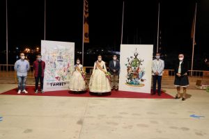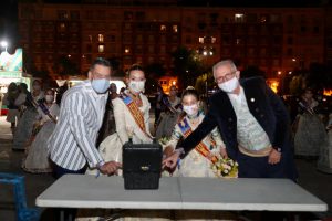 Al acto han acudido las Falleras Mayores de València, Consuelo Llobell y Carla García, acompañadas por los artistas falleros de las fallas municipales, José Luis Ceballos y Paco Sanabria, y Alejandro Santaeulalia y Dulk.