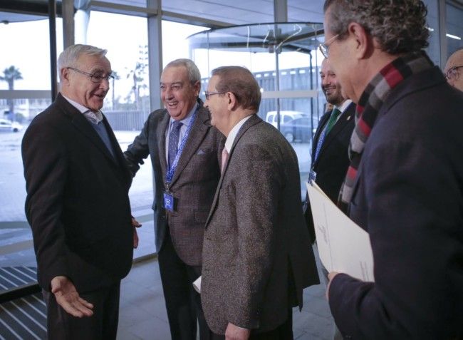El alcalde de València, Joan Ribó, junto al presidente de FERRMED, Joan Amorós, el secretario autonómico de Vivienda, Obras Públicas y Vertebración del Territorio, Lluís Ferrando, y el comisionado para el Corredor Mediterráneo, Josep Vicent Boira, han participado esta mañana en la apertura institucional de las jornadas ‘El Corredor Mediterráneo y su impacto en las redes ferroviarias metropolitanas de los grandes nodos urbanos’ organizadas por FERRMED en el edificio Veles e Vents de la Marina de València.