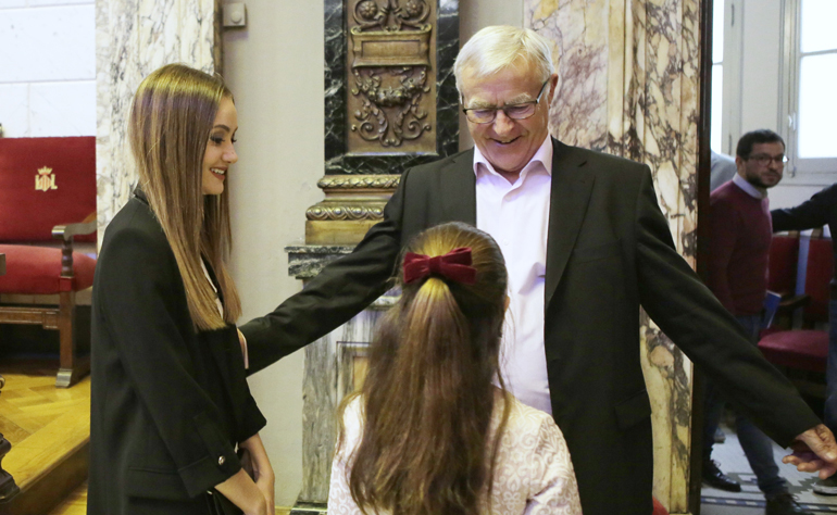 El alcalde de València, Joan Ribó, acompañado del concejal de Cultura Festiva, Carlos Galiana, se ha reunido esta mañana con las Falleras Mayores de València de 2020, Consuelo Llobell y Carla García, y sus cortes de honor. Ribó ha "agradecido" el papel adoptado por las máximas representantes de las Fallas en relación a la crisis con el coronavirus, al mismo tiempo que los ha emplazado a "trabajar desde ya mismo para tener en julio unas Fallas dignas y excelentes. Esto es solo un paréntesis excepcional, que pasará. El movimiento fallero es fuerte y resiliente. Continuaremos adelante".