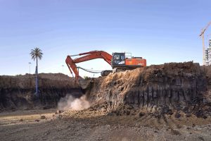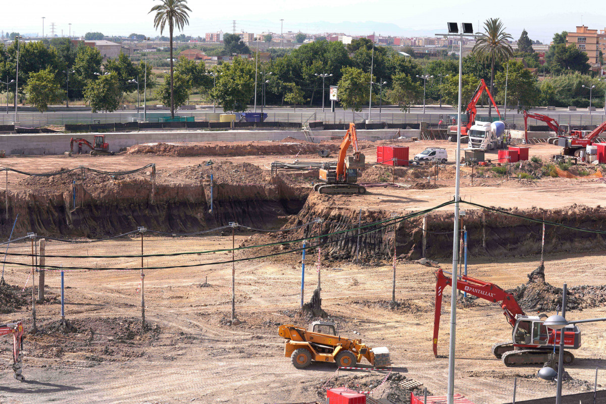 En estos momentos la obra del Arena ha cumplimentado ya la excavación previa de terreno a -2 metros y se han finalizado los muros pantalla, y actualmente se está extrayendo el agua procedente del nivel freático, la cual está siendo reconducida a acequias cercanas a la parcela.