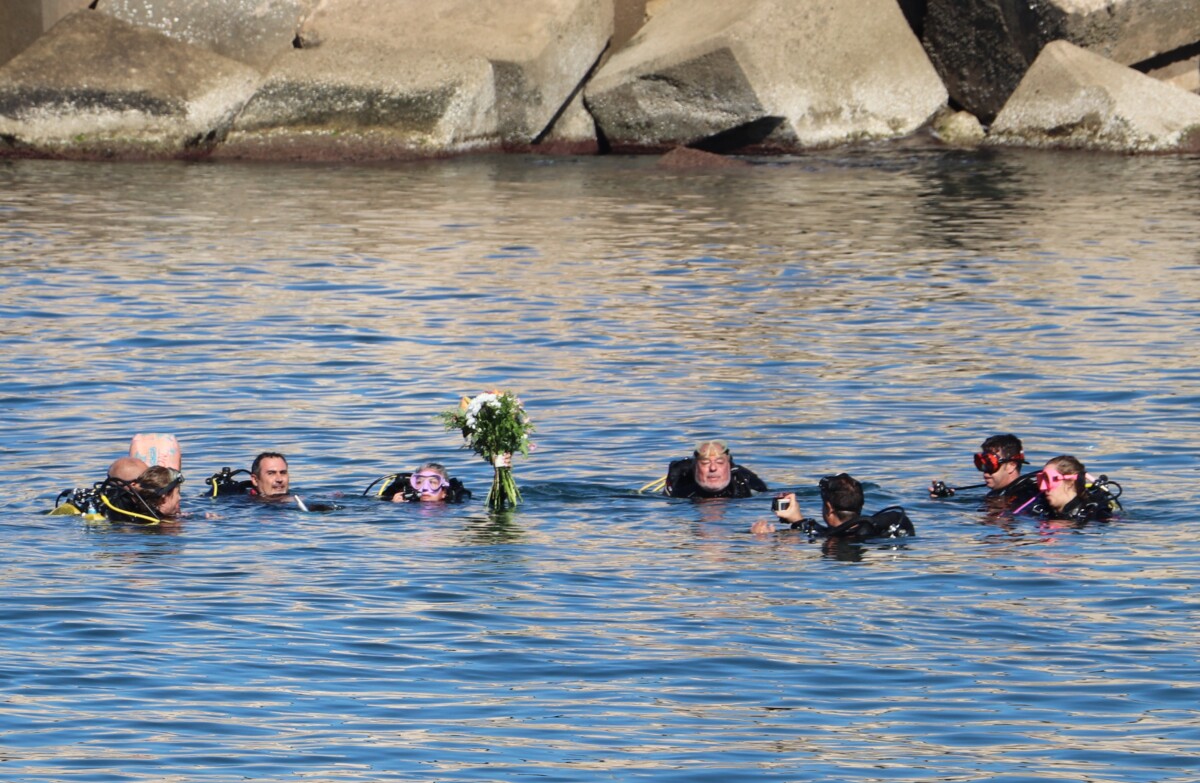 Una vez de vuelta al puerto, se realizó una foto de familia para conmemorar el acto, con la que concluyó una jornada distendida en un gran día de Ofrenda Marinera, agradeciendo la colaboración y las facilidades prestadas por el grupo de submarinistas del GISED Valencia, el Real Club Náutico de Valencia, y Guardia Civil.