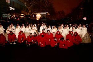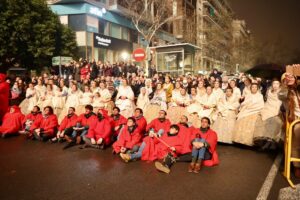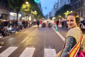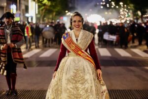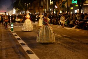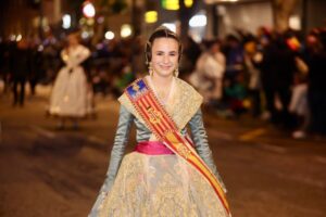 Abrió el desfile la colla de tabal i dolçaina de la Junta Central Fallera, seguida de las Falleras Mayores de València, Carmen Martín y Nerea López, acompañadas de sus Cortes de Honor.