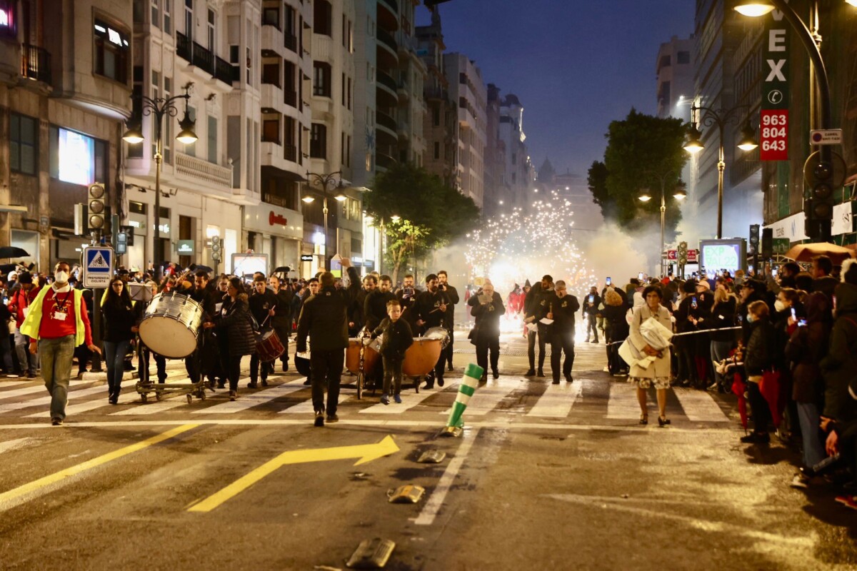La espectacular comitiva recorrió las calles de Russafa y Colón, hasta llegar a la Porta de la Mar, donde Pirofesta se encargó de desplegar un apoteósico final de cabalgata.