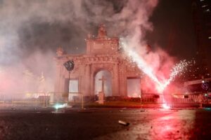 La Cabalgata del Foc desafió a la lluvia que de forma intermitente estuvo apareciendo durante toda la jornada del 19 de marzo. Finalmente, a las 19 horas arrancó desde la calle de Russafa camino del centro de la ciudad.