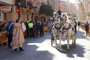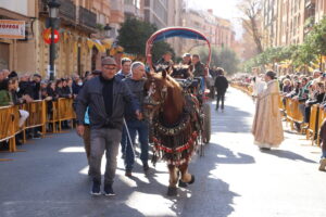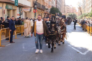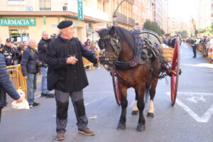 Por último, han hecho acto de presencia los caballos, mulos y hasta burros, tradicionalmente tan unidos a la tierra, a la huerta valenciana, y que aún hoy mantienen viva la imagen del campo valenciano pese al voraz progreso tecnológico. Personajes como el mítico maestro arrocero Toni Montoliu, desde Meliana, se han unido a esta tradición que hoy ha sido respetada por el fuerte viento reinante, dejando un oasis de quietud durante el tiempo que ha durado el acto.