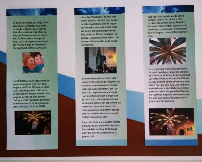 La representación musical religiosa que tiene sus orígenes en la Edad Media, en el siglo XVII, contemporánea de otras como 'El Misteri d’Elx', se representará el domingo 16 de septiembre enmarcada en los actos de las fiestas patronales de Castellar, según han informado sus organizadores, L’Associació Amics de la Carxofa de Castellar-Oliveral.