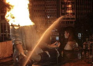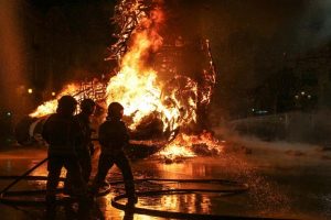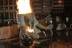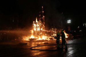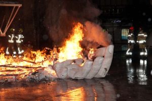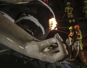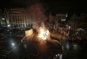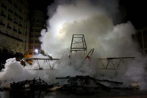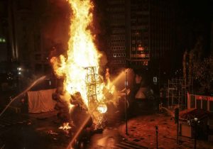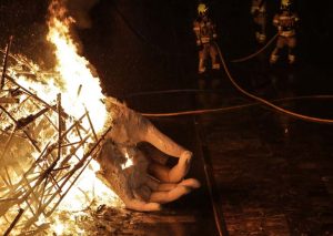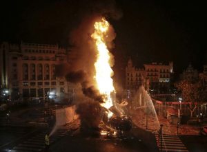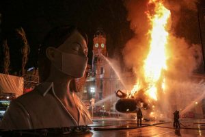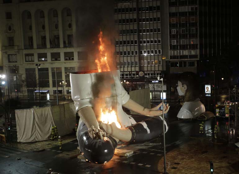 La mayor parte de los valencianos y valencianas tuvimos que ver, a través de Youtube, cómo las llamas consumían la mitad inferior del ninot principal de la Falla Municipal 2020. Sin ruido. Sin traca. Sin más ceremonia que la que otorga el uso de una lanza térmica con la que un bombero prendió con maestría el monumento creado por Manolo Martín, José Ramón Espuig y Escif.