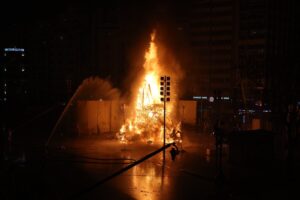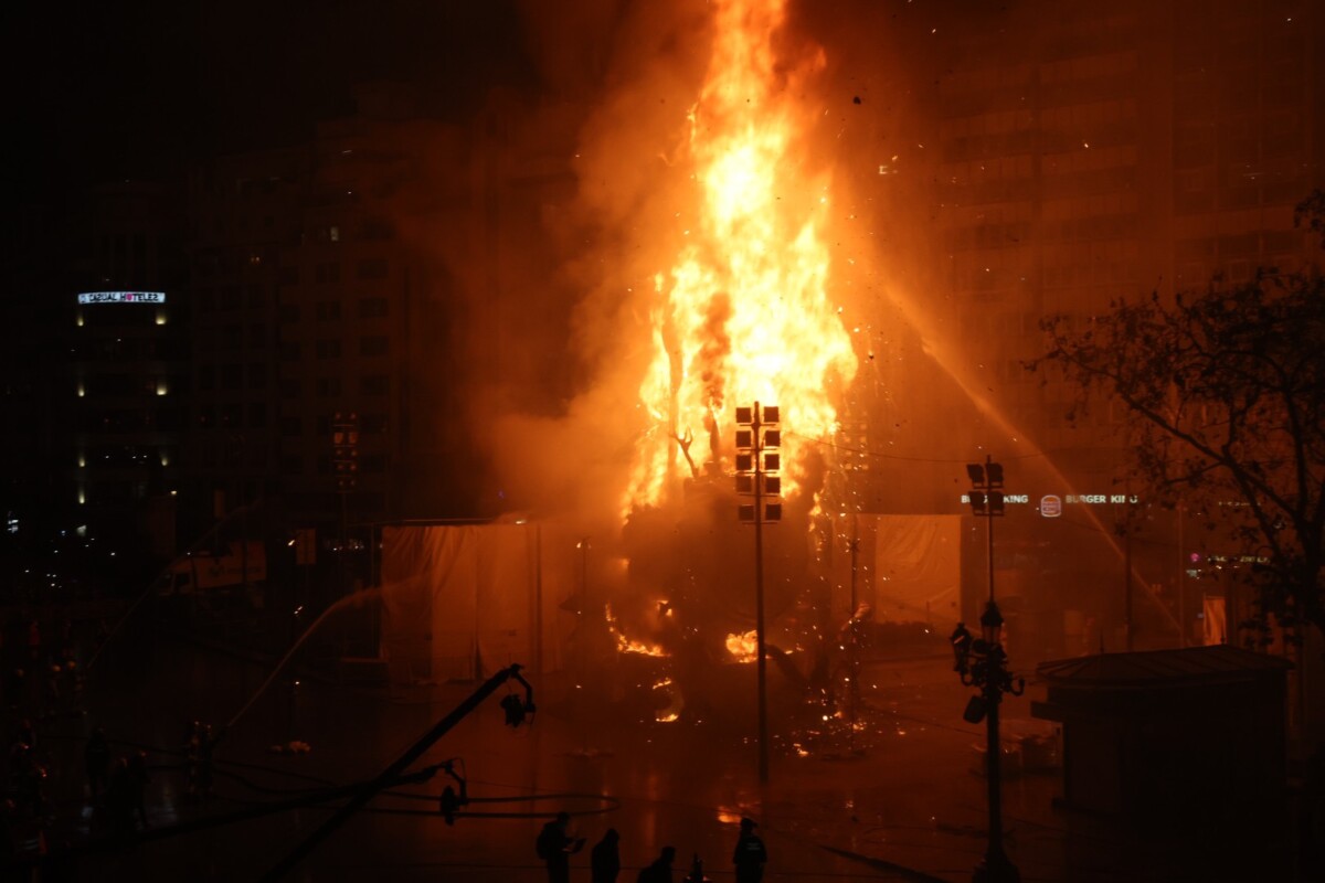A continuación fueron quemándose las fallas grandes, a partir de las 22 horas por turnos según la llegada de los bomberos a cada demarcación, en un horario que acababa teóricamente a las 0 horas, pero que se alargaría con alguna que otra falla que fue quemada a las dos de la madrugada.