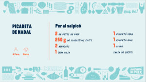 Ja està ací la nit de Nadal i com que és un dia especial, prepararem un plat especial: una picadeta de Nadal consistent en dos entrants. Per una banda, tenim un salpicó de polp amb llagostins i salsa de còctel, i per l'altra, marinarem un salmó per a farcir-lo de brull, caviar i pimentons del piquillo.
