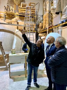 El president de la Diputació va visitar també els tallers de Palanca i Esteve, i el de Manuel Algarra, que enguany signarà els monuments d'Almirante Cadarso-Conde Altea i Maestro Gozalbo-Conde Altea, en secció Especial i 1ª A respectivament. Algarra va explicar a Toni Gaspar el discurs artístic dels monuments que, un any més, plantarà en el barri de Russafa.