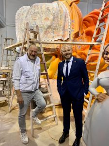 El president de la Diputació de València, Toni Gaspar, va visitar este dimarts la Ciutat de l'Artista Faller, on els artistes ultimen els detalls dels monuments que en menys d'un mes prendran els carrers de la ciutat i els municipis valencians.
