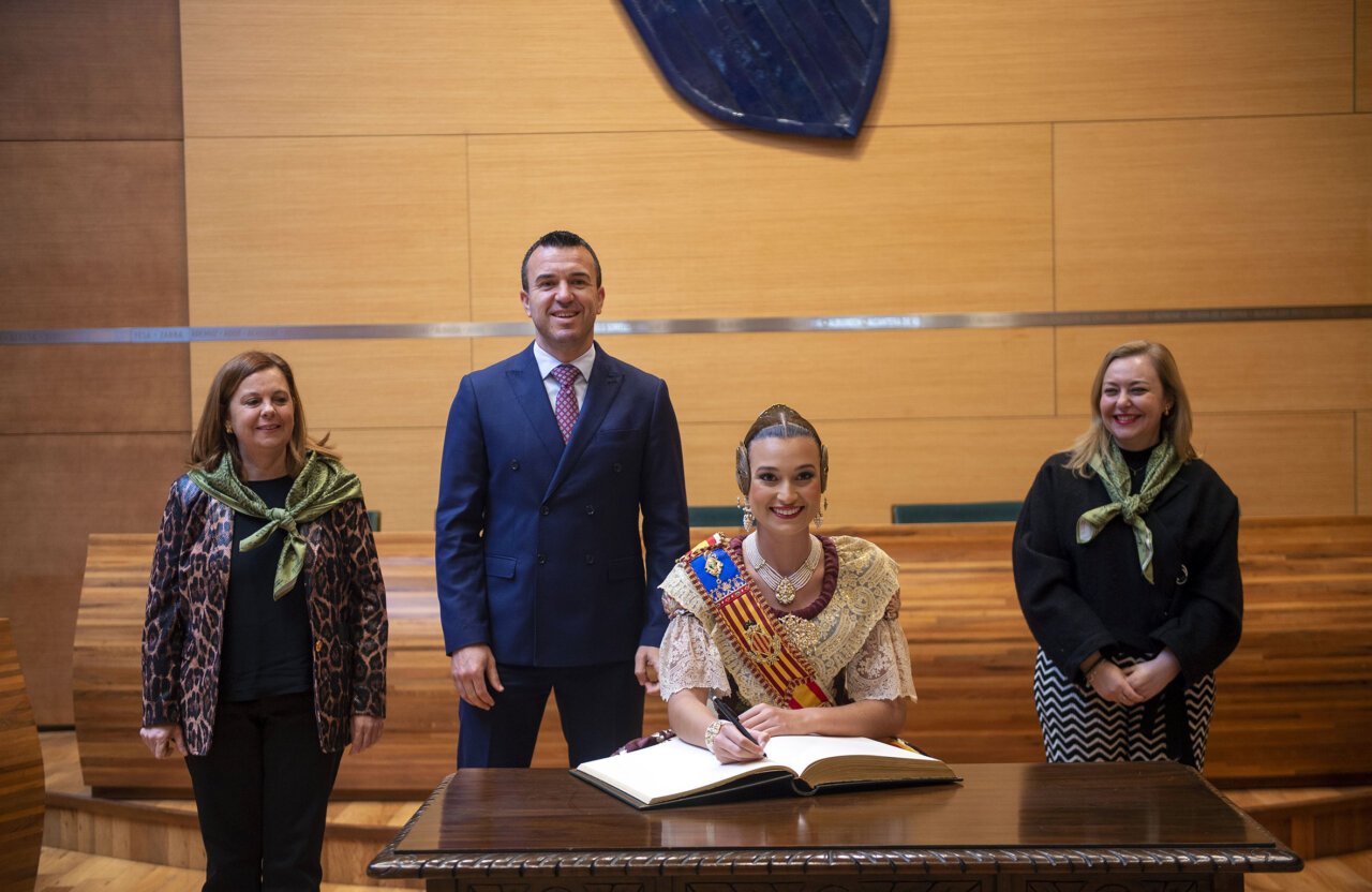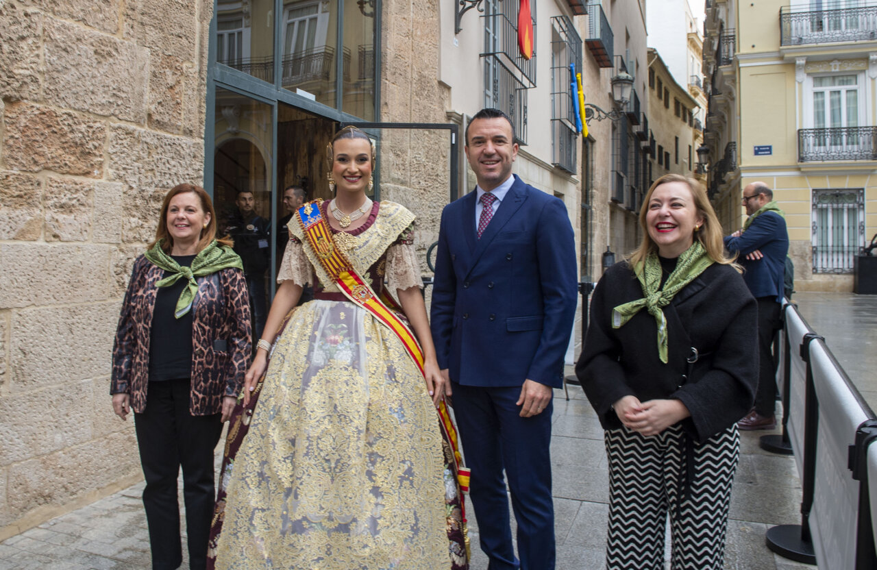 El propio Mompó, acompañado por las vicepresidentas Natàlia Enguix y Reme Mazzolari, ha recibido a la Fallera Mayor de Valencia y su Corte pasadas las nueve de la mañana. Tras la firma de Berta Peiró en el Libro de Honor de la Diputación, la comitiva ha visitado la exposición ‘Falles pel món’, que permanecerá abierta al público hasta el 26 de marzo en la Sala de Reinas de la institución provincial. El recorrido fotográfico muestra la implantación de las Fallas en todo el territorio español, de A Coruña a Melilla, pasando por Barcelona, Getafe, Zaragoza, Oviedo, Gijón, Salamanca, Burgos y Sevilla, entre otras localidades, y también en países como México, Argentina, Colombia, Estados Unidos, Francia, Mali, Japón y China, entre otros.