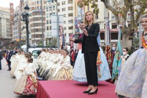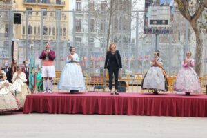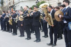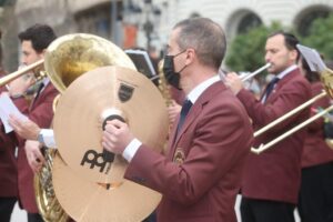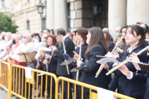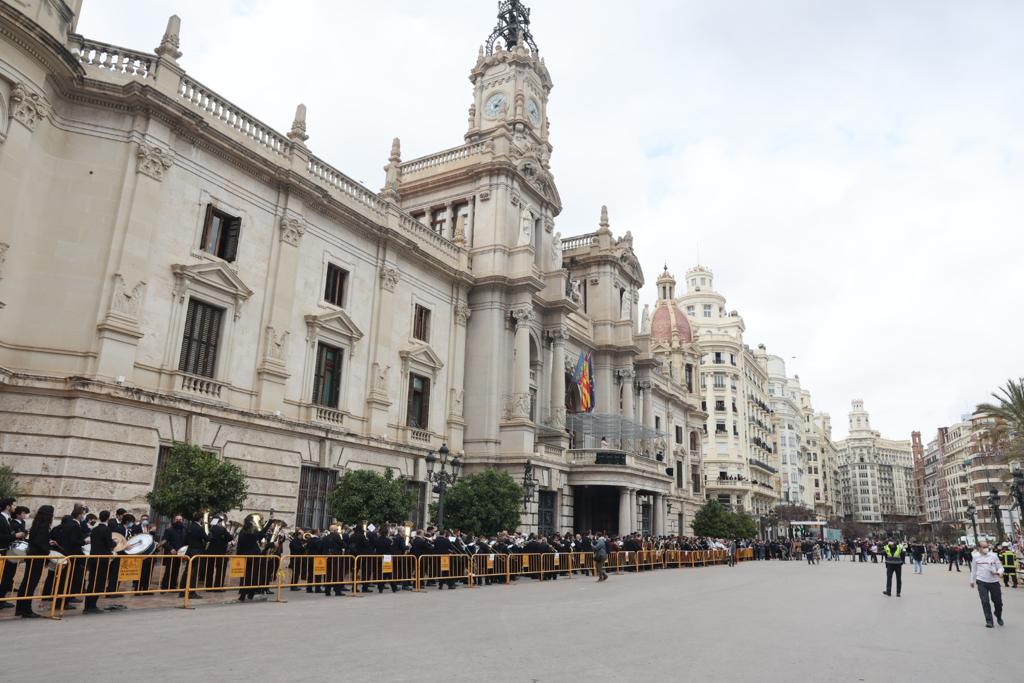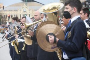 Fotos: Armando Romero (JCF).- Tras la pólvora, la música, otro de los tesoros del pueblo valenciano. El segundo acto en el guión de este domingo, día de la Crida, tras la macrodespertà y posterior mascletà, ha sido la entrada de bandas, acto que se realiza desde el año 2004 por iniciativa de la Delegación de Cultura de la Junta Central Fallera. Este año, celebra su 18ª edición a pesar de que en 2006 se suspendió por las inclemencias meteorológicas. En 2020 sí que se llegó a celebrar, antes de la suspensión de las Fallas a causa del coronavirus de aquel fatídico 10 de marzo.