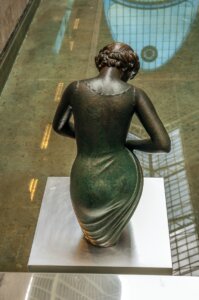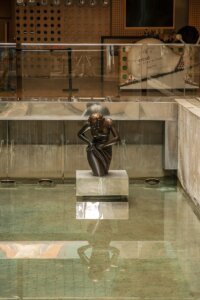 La escultura ‘Muchacha en el lago’ de Antonio Ballester, será reubicada en la lámina de agua de la fuente del Mercado de Colón. Esta intervención se realizará, con la supervisión del personal técnico del Servicio Municipal de Patrimonio Histórico, de la Concejalía de Cultura, y en cumplimiento del acuerdo de donación, que data de 2017.