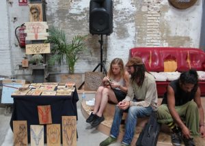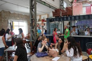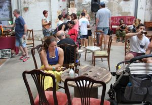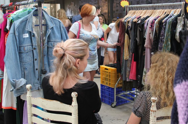 Nos esperan Adela e Inma, dos eternas estudiantes de Bellas Artes -no porque no aprobaran en su día, ojo, que sí lo hicieron, sino porque siguen en su empeño de seguir aprendiendo cada día-. Entre ropitas y avalorios, estos últimos de factura propia como corresponde a su condición de artistas, ambas nos comentan la oportunidad única que significa tanto para los comerciantes como para los consumidores poder contar con un espacio como la Fábrica de Hielo en el que poder vender unos sin presiones desorbitadas y poder comprar los otros a precios razonables. Por no hablar del clima que se crea, cosmopolita, relajado, casi hasta sibarita.