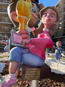 Y en la categoría de mayores, el jurado ha concedido el primer premio también a esta comisión por una escena centrada en los avances de la inteligencia artificial. El ninot se centra en el avance de esta disciplina y da vida a una psicóloga en su gabinete 'especializado en el ChatJDT'.