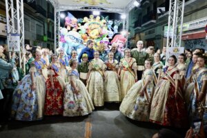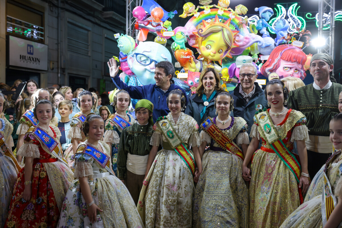 Tras el alegrón, la emblemática comisión ha recibido la visita de la fallera mayor infantil de Valencia, Marina García, acompañada por su corte de honor, y también por la alcaldesa de Valencia, María José Catalá, y el president de la Generalitat, Carlos Mazón.