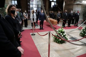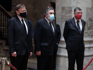 El president de la Generalitat, Ximo Puig, el ministro de Cultura y Deporte, José Manuel Rodríguez Uribes, miembros del Consell, autoridades de la Comunitat Valenciana y la familia de Francisco Brines han asistido al homenaje previo a la apertura a la ciudadanía de la capilla ardiente.