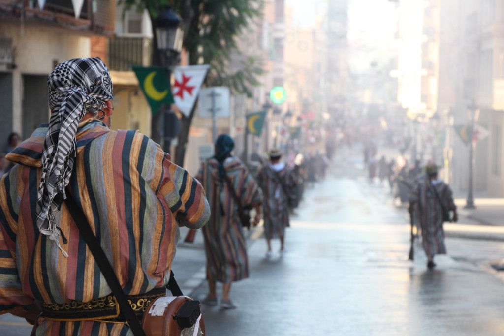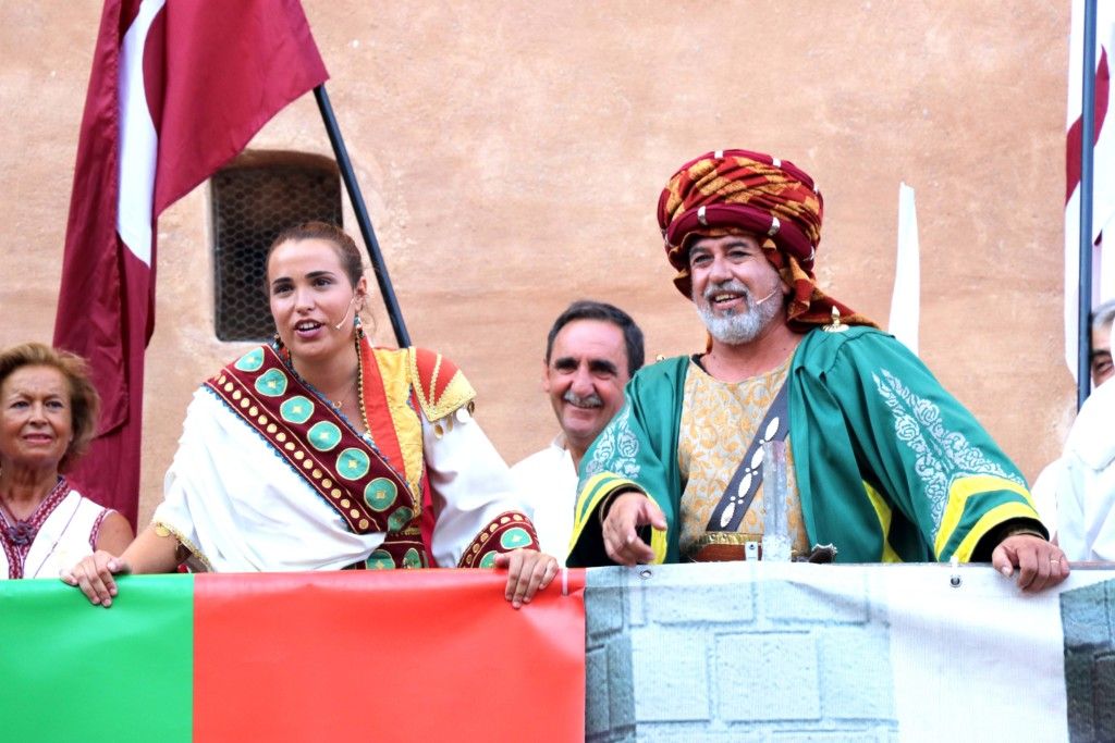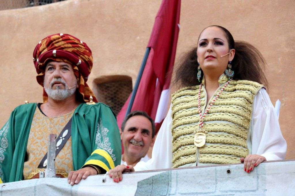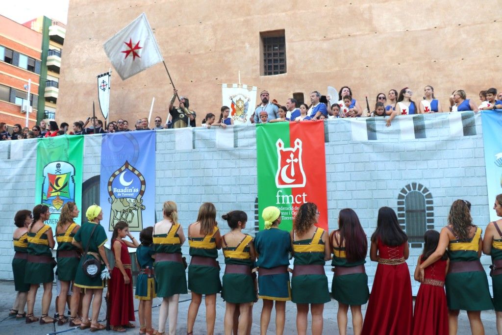 Llegados a la mitad del acto, las comparsas moras fueron desfilando con su habitual espectacularidad en las vestimentas. El alférez moro, Eduardo Hidalgo, de la comparsa Berberiscos, con un espectacular boato deleitó a torrentinos y visitantes. Por último, la comparsa más antigua de la ciudad, Buadin’ss dio paso a la capitana mora, Laura Simó, que cerró esta Gran Entrada Mora y Cristiana de la capital de l’Horta Sud.