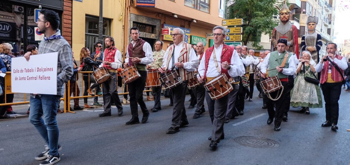 La propuesta comenzará en la plaza de la Reina a las 20:30 horas. Un desfile y entrada de bandas de cornetas y tambores recorrerá la calle San Vicente hasta la plaza del Ayuntamiento, para confluir ante el balcón de la fachada principal del Ayuntamiento, donde cada formación interpretará unas piezas. Participarán en la comitiva las bandas de Cornetas, Gaitas y Tambores CIO, San Luís Beltrán, Canyamelar y Virgen de los Dolores.