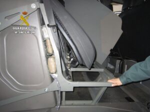 Finalmente el vehículo era trasladado hasta la Ciudad Autónoma de Melilla donde se producía la carga de la droga en “garajes” previamente alquilados por la organización en el extrarradio de la ciudad, donde actuaban en clandestinidad.
