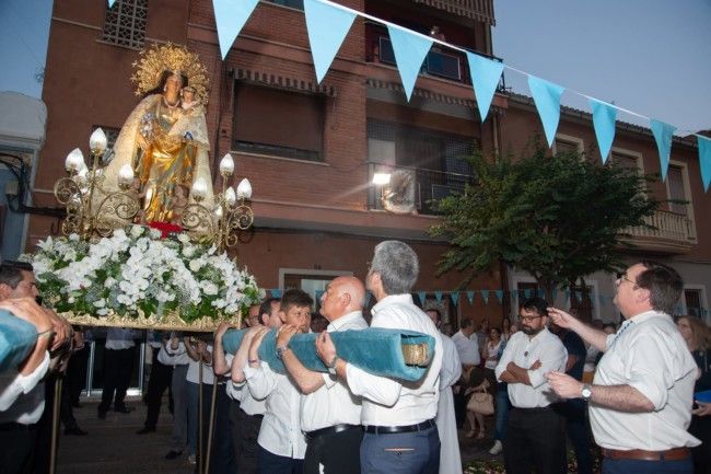 Hoy domingo, 30 de junio, la imagen ha acompañado el rezo de Laudes y del Santo Rosario de la Aurora por las calles de la población “haciendo una visita a uno de los pisos tutelados por la Fundación MAIDES” hasta llegar al cementerio municipal, donde se ha rezado un responso por todos los difuntos.